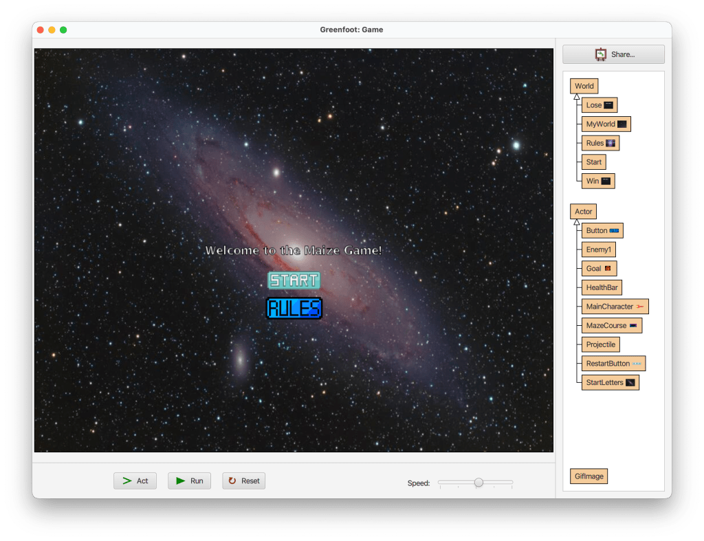 Before school came to an end, in our AP Computer Science A class, we were given an end of year project which was to create a game using the Greenfoot software. I was paired with two other classmates and we assigned roles and sections for us to complete before the deadline before the deadline so that we could compile the project and submit it.
