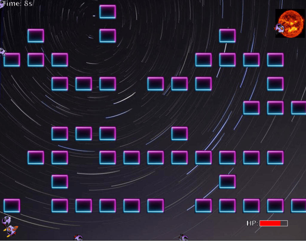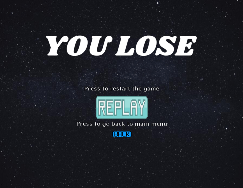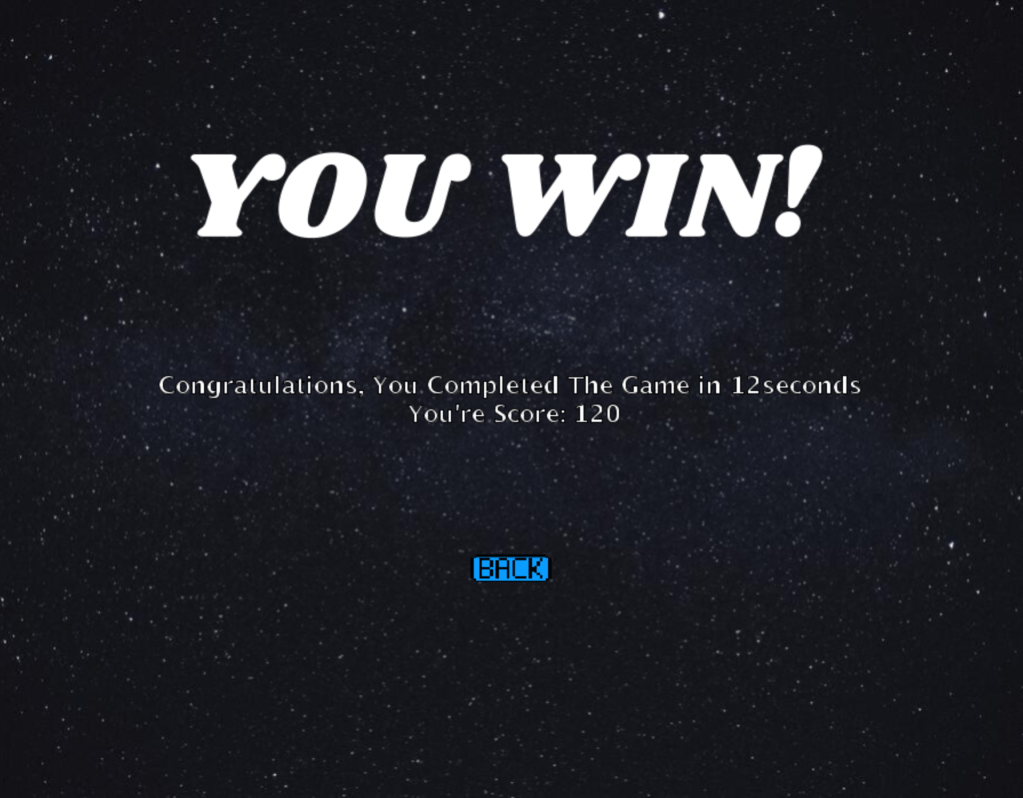 As you can see, there are obstacles that create the maze for the player to navigate through and at the top left hand side of the page, there is a part that indicates the amount of time that the player has spent playing the game. At the bottom right hand side, there is the HP bar the shows the player how many health points the main character, the rocket, has until it explodes and the game ends. When the game ends, and there are two senarios: win or lose, the player it taken to either of the two pages: win page, lose page.