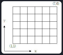 Among the intersection points where the vertical and horizontal lines meet, the position of the lower left point is (1,1), and the coordinates of the upper rightmost point are (m,n).